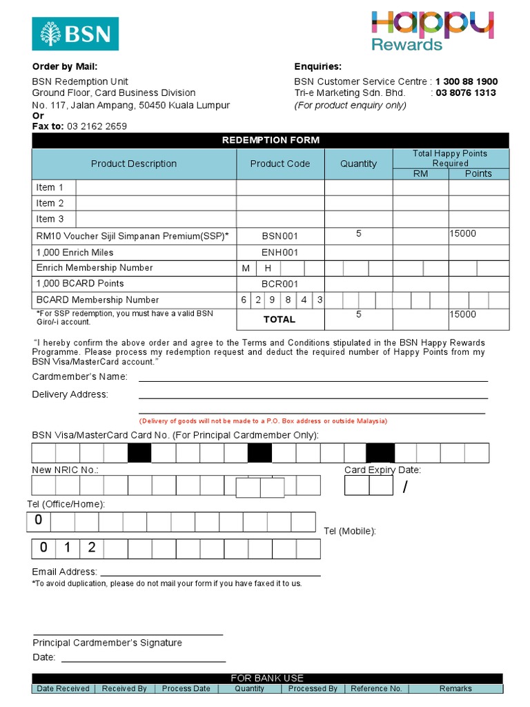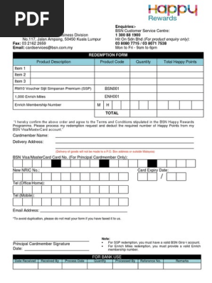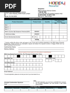 Happy Rewards Redemption Form Bsn 2017 Pdf Financial Technology Finance Money Management